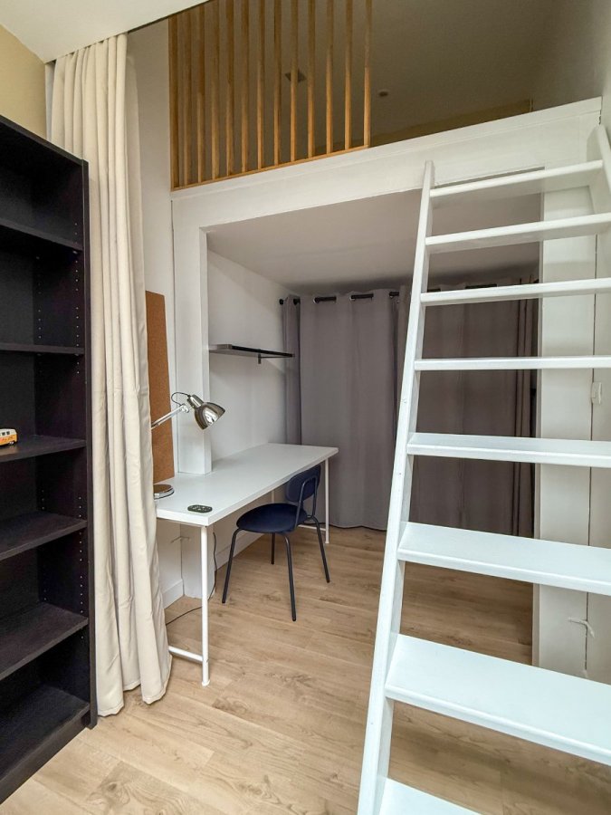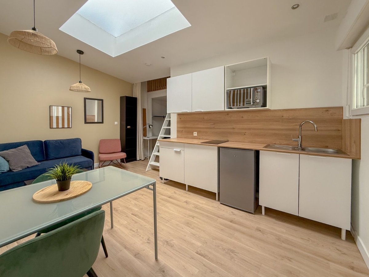 Dans une petite copropriété située rue Paul Lafargue, cet appartement parfaitement rénové propose calme et luminosité. Il est composé d'un séjour parqueté, avec cuisine équipée ouverte, un coin nuit en mezzanine, un espace bureau et rangements, une salle de douche. De plus, une petite terrasse permet de profiter des beaux jours.